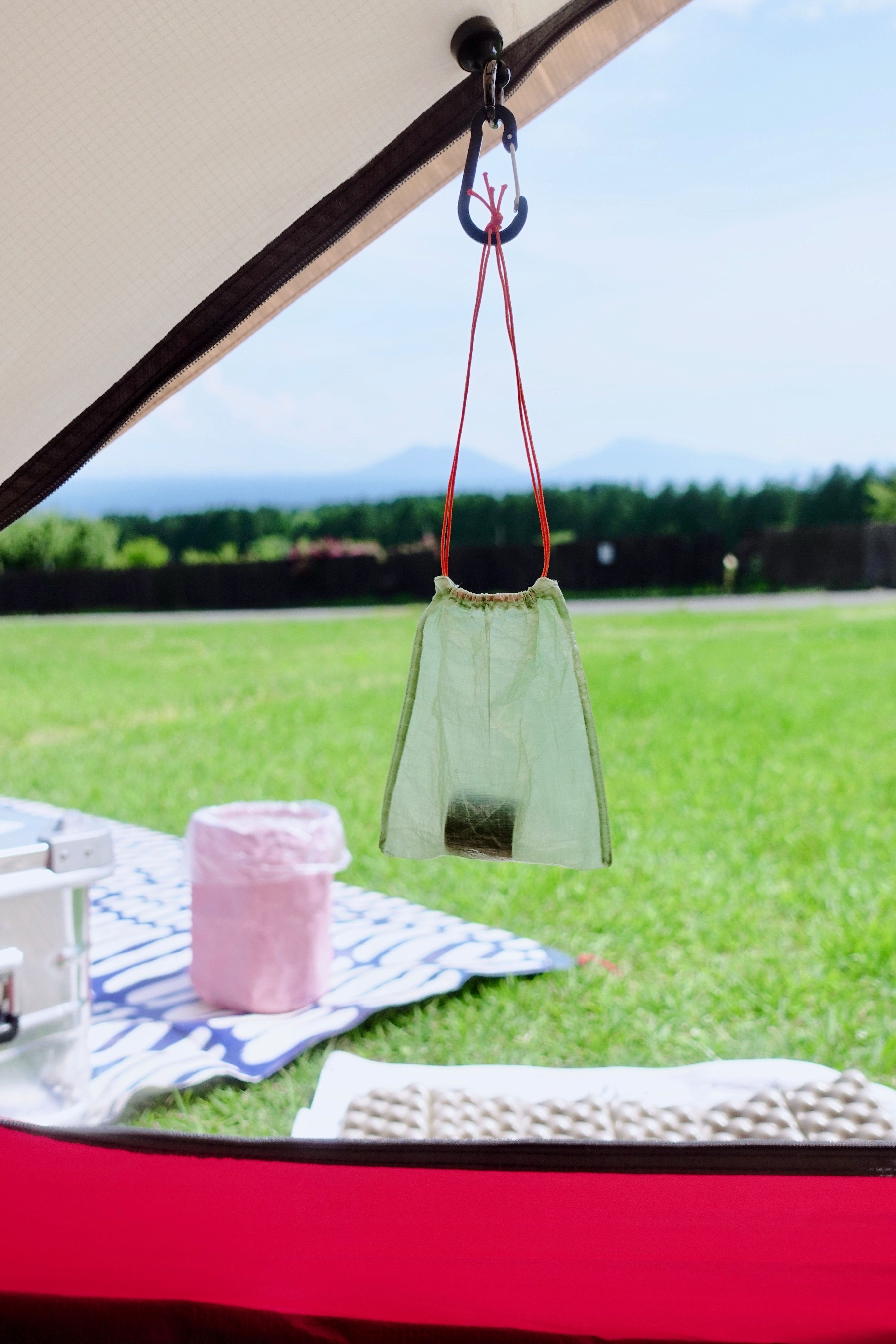 swayneema sac miniは、swayvec trash bagの収納袋としてはもちろん、ガス缶のキャップや小物のちょっとした置き場所にも。夜にはLEDライトシェードとしても使っていて、水や熱に気をつけながら自分なりの使い方を楽しんでいます。お手に取っていただいた方にも、それぞれのスタイルに合わせて自由に役立てていただけたら嬉しいです。